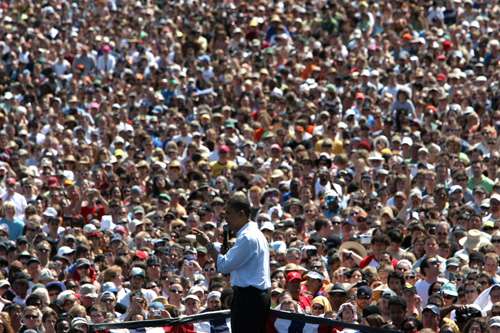 美國(guó)民主黨總統(tǒng)競(jìng)選人奧巴馬十八日在俄勒岡州對(duì)民眾演講。