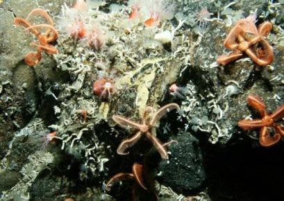 棲居在海山山頂?shù)暮Q笊镆话闶巧汉骱秃>d,生物學(xué)家相信,這是海山上第一次出現(xiàn)類似海蛇尾城市的生態(tài)系統(tǒng)。