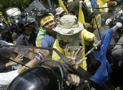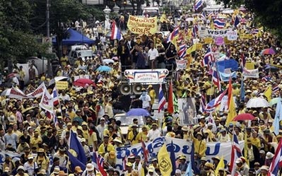 此次反政府活動(dòng)是由泰國(guó)人民民主聯(lián)盟(民盟)組織的。示威者和警察的對(duì)峙使得總理府周邊區(qū)域陷入混亂,道路的交通完全中斷,學(xué)校停課,總理府各部門不得不放假一天。