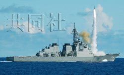 日本海上自衛(wèi)隊(duì)的宙斯盾艦“霧島”號在環(huán)太平洋聯(lián)合軍演中發(fā)射防空導(dǎo)彈。