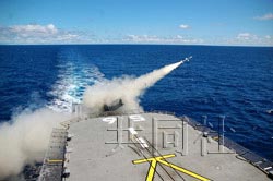 日本海上自衛(wèi)隊(duì)的“瀨戶霧”號護(hù)衛(wèi)艦在環(huán)太平洋聯(lián)合軍演中發(fā)射防空導(dǎo)彈。
