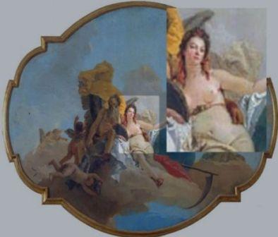 這幅名畫是意大利十八世紀(jì)洛可可風(fēng)格大師提埃坡羅的名作之一,名為《Truth Revealed by Time》,由貝盧斯科尼親自挑選,掛于總理府新聞發(fā)布室墻上作裝飾,期望增添一點(diǎn)藝術(shù)色彩。