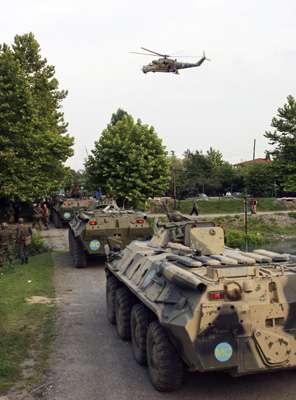 另據(jù)國(guó)際文傳電訊社報(bào)道,在格魯吉亞西部的阿布哈茲自治區(qū),俄軍增派了九千多名傘兵以及三百五十輛裝甲車。俄羅斯駐當(dāng)?shù)鼐S和部隊(duì)司令恰班十一日已向駐守阿布哈茲的格魯吉亞守軍發(fā)出最后通碟,要求格軍繳械,在當(dāng)?shù)貢r(shí)間晚十點(diǎn)前全面施行“去軍事化”。格魯吉亞官員透露,格方已經(jīng)通過聯(lián)合國(guó)軍事觀察員接到了俄軍的“最后通牒”,但拒絕接受繳械要求。