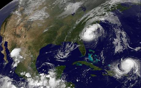 衛(wèi)星云圖顯示加勒比海生成的颶風(fēng),其中“漢娜”已經(jīng)逼近美國。