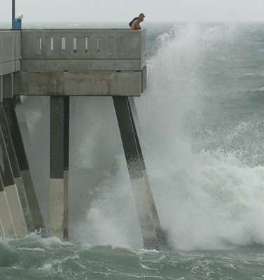 9月6日,颶風(fēng)“漢娜”外圍已經(jīng)抵達美國,掀起海浪。