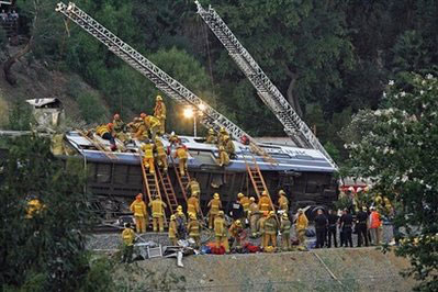 12日下午4時23分,一輛從洛杉磯聯(lián)合火車站出發(fā)的乘客列車,與另一輛在同一軌道上迎面駛來的貨車相撞。乘客列車撞后出軌,側(cè)翻在路旁。列車上共有222名乘客。《洛杉磯時報》報道說,列車上可能最多有400名乘客。約250名消防員、警察趕到現(xiàn)場救援。