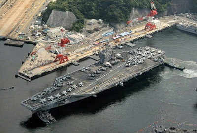 資料圖片:美軍“華盛頓”號(hào)航母抵達(dá)日本