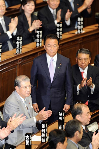 當(dāng)?shù)貢r間9月24日13點(diǎn)30分,麻生太郎在日本眾議院全體會議上以337票被指定為第92任日本總理大臣。