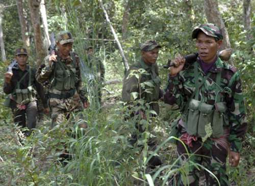柬埔寨部隊十四日在柏威夏寺附近巡邏