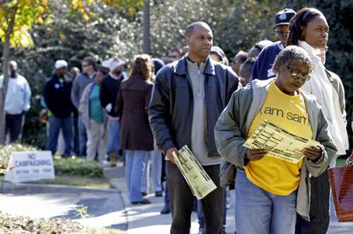 選舉官員指出,鑒于今年登記的選民大增,為了避免投票當天大排長龍和二○○四年混亂的投票機故障事件重演,許多州都提早投票。在關鍵的“搖擺州”如俄亥俄州、佛羅里達州及內(nèi)華達州,設在圖書館、商場和學校的投票中心,都可見排隊等候的人龍。在佐治亞州和北卡羅來納州,本周參與提前投票的選民比上屆多出一倍。