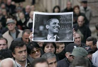 示威者聚集在議會大樓外,高舉標語、揮舞旗幟,要求進行民主改革。甚至有不少人舉起剛剛當選美國總統(tǒng)的奧巴馬的畫像,寓意改革。組織者本來希望吸引3萬人參加,不過現(xiàn)場記者估計大約只有1萬出席。