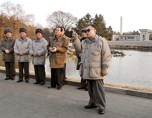 朝鮮勞動黨中央部長張成澤和外務(wù)省第一副相姜錫柱等陪同金正日視察。