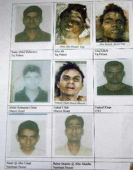 孟買(mǎi)警方首席調(diào)查員馬里亞向公眾展示嫌疑者的照片。馬里亞說(shuō),照片從犯罪嫌疑人尸體拍攝得來(lái)、或來(lái)自他們隨身帶著的身份證明。他說(shuō),嫌犯年齡介乎20至28歲,部分人曾化名接受訓(xùn)練。