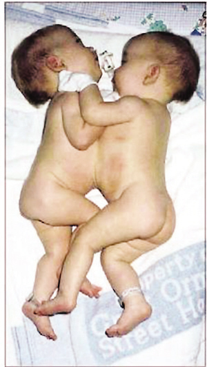 據(jù)統(tǒng)計(jì),連體雙胞胎的出生率在新生兒中僅為20萬分之一。喬安最不愿意做的一個(gè)抉擇是,在2個(gè)寶寶中選擇一個(gè)存活,同時(shí)犧牲另一個(gè)。為此她終日祈禱。1997年4月6日,喬安在曼徹斯特市的圣瑪麗醫(yī)院經(jīng)剖腹產(chǎn)生下一對(duì)連體女嬰,取名為尼芙和愛法。喬安回憶稱:“看到2個(gè)小寶寶后,我的第一反應(yīng)是她們是如此正常,僅僅是‘粘連’在一起而已。她們出生時(shí)互相擁吻著,其中一個(gè)的嘴唇緊貼著另一個(gè),可愛極了!