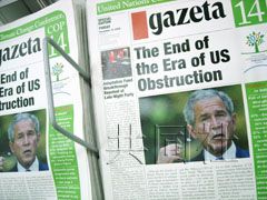 中新網(wǎng)12月13日電 據(jù)日本共同社報(bào)道,隨著《氣候變動(dòng)框架公約》締約國(guó)第14次會(huì)議在波茲南閉幕,波蘭著名報(bào)紙《選舉報(bào)》(英文版)12日刊行一份“假號(hào)外”,諷刺美國(guó)布什政府始終拒絕批準(zhǔn)《京都議定書(shū)》。