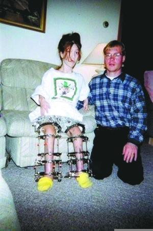 在這幸福的背后是蒂凡尼經(jīng)受的拉骨增高手術(shù)帶來(lái)的痛苦。“醫(yī)生敲斷我的腿骨,在斷裂的骨骼里植入一個(gè)裝置,這種裝置能夠?qū)⒐穷^拉長(zhǎng)!钡俜材岬拿劰、腿骨和臂骨共接受了12次手術(shù),最后身高增加了大約35厘米,達(dá)到1.47米。