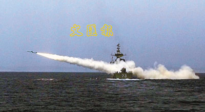 伊朗稱新測試的導(dǎo)彈世上獨(dú)有,射程達(dá)300公里。圖為伊朗海軍2006年8月在阿曼海進(jìn)行軍演時試射導(dǎo)彈。(圖:香港《文匯報(bào)》)