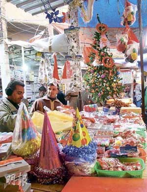 伊拉克市面上有不少售賣(mài)圣誕飾物的攤檔。