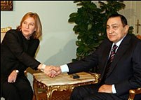 以色列外長(zhǎng)利夫尼和埃及總統(tǒng)穆巴拉克