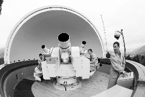 昨日,西昌衛(wèi)星發(fā)射中心指控中心觀測室的技術(shù)人員正在對負(fù)責(zé)跟蹤測量衛(wèi)星起飛姿態(tài)的廣電經(jīng)緯儀進(jìn)行檢測。 秦憲安 攝