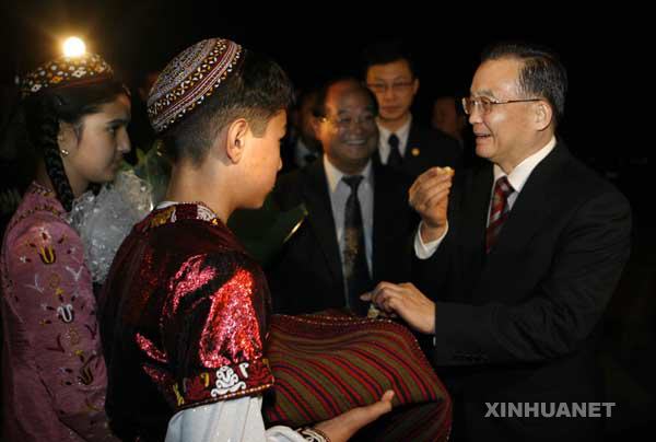 會談前,別爾德穆哈梅多夫在總統(tǒng)府外廣場為溫家寶總理來訪舉行隆重歡迎儀式。