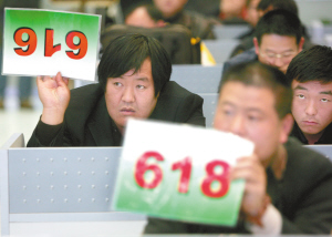 昨日下午2時(shí),離行政事業(yè)單位全市首場(chǎng)資產(chǎn)拍賣(mài)會(huì)還有半個(gè)小時(shí),北京產(chǎn)權(quán)交易所拍賣(mài)大廳里已經(jīng)坐了上百人。報(bào)名的競(jìng)買(mǎi)人有80余名,其中大部分是自然人,還有一些是回收公司的代表。