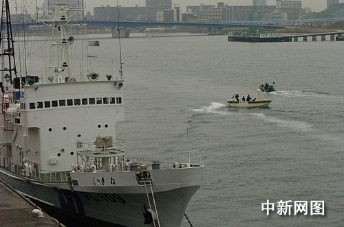 28日當(dāng)?shù)貢r間上午8點半,距離中國海軍“深圳”號導(dǎo)彈驅(qū)逐艦的到來還有大約一個半小時。東京晴海碼頭已聚集了大量日本警察及中、日等國的記者。圖為在日本海上保安廳的船只和人員在晴海碼頭附近等待“深圳”號。作者:朱沿華