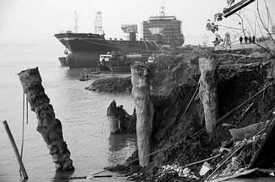 在江東船廠,相關部門負責人告訴記者,坍塌的江岸位于蕪湖大堤百多米寬的江灘上,地質上屬于不穩(wěn)定岸坡,江東船廠新建的3萬噸船臺滑道工地以及大江造船公司造船工地都位于該區(qū)域。
