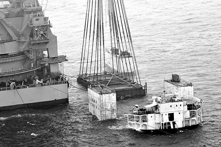 “南海一號”打撈總指揮吳建成工程師介紹,在這之后的步驟就是將“南海一號”鋼鉆井放在半潛駁船上,把鋼鉆井提出水面1.5米左右,同時緩緩移動“華天龍”打撈船,把鋼鉆井放到“華天龍”打撈船上。這樣,半潛駁船“1601”就會排水并慢慢起浮,并把“南海一號”鋼鉆井牢牢穩(wěn)定在“1601”駁船上。
