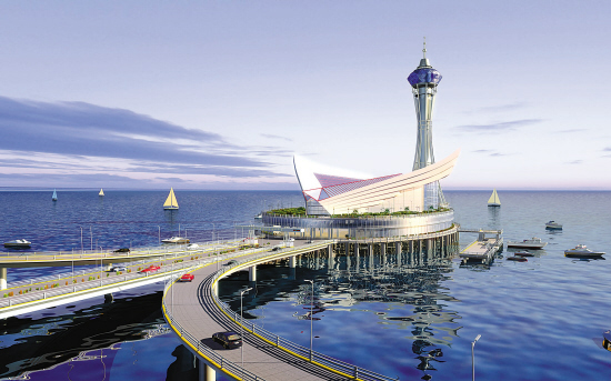 杭州灣跨海大橋的“點睛之筆”——海中平臺房及觀光塔,今天起由精工鋼構(gòu)集團開始建設。整個工程包括平臺房、觀光塔以及連接棧橋三部分。其中平臺房建筑面積為36617平方米,共6層;觀光塔總建筑面積為5100平方米,共16層,建筑高度為145.6米。
