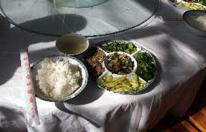 中午飯安排在明熙苑度假山莊,仇和書記與富民縣相關(guān)領(lǐng)導(dǎo)等10余人,分在了“明月廳”就餐。這是一個(gè)約40平方的普通餐廳,擺了一張旋轉(zhuǎn)圓桌,最多可供16人同時(shí)就餐。