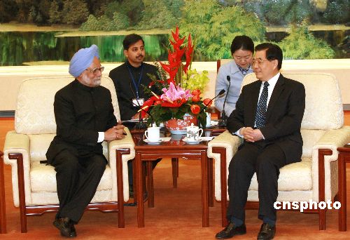 中新網北京1月15日電(記者 王巖)中國國家主席胡錦濤今天下午在北京人民大會堂會見了來訪的印度總理曼莫漢·辛格。