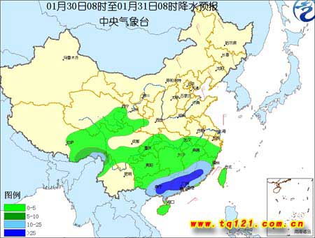 中新網1月30日電 據中央氣象臺預報,30~31日,東部降水區(qū)南壓到江南南部和華南大部;2月1日,雨區(qū)將再度移到江淮和漢水一帶。未來三天,江南南部、華南北部和西部的部分地區(qū)有大雨,局部地區(qū)有暴雨;西藏東部、云南西北部、湖南中北部、江西北部、浙江中北部、蘇皖南部的部分地區(qū)有大雪,局地有暴雪;貴州中南部、湖南南部等地的部分地區(qū)凍雨天氣仍將持續(xù)。