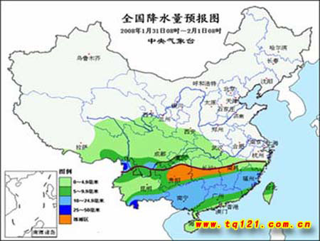 中新網(wǎng)1月31日電 據(jù)中央氣象臺預(yù)報,31日起,中國南方大部自西向東將有一次明顯雨雪天氣過程。江南南部、華南北部的部分地區(qū)有大雨,局部地區(qū)有暴雨;西藏東南部、川西高原南部、云南西北部和東北部、貴州北部、湖北南部、湖南中北部、江西北部、浙江中北部、蘇皖南部等地的部分地區(qū)有大雪,局地有暴雪;貴州大部、湖南中南部、江西中部等地的部分地區(qū)有凍雨。