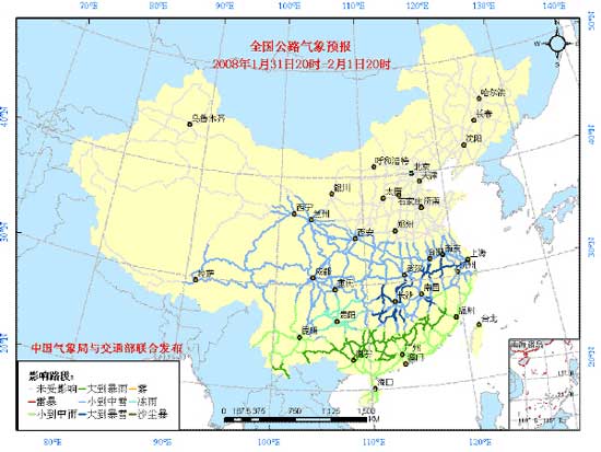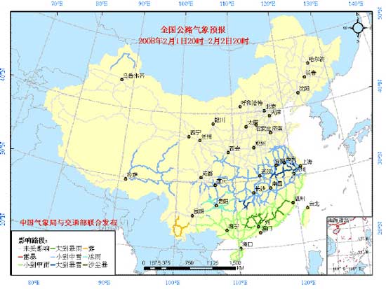 中新網(wǎng)2月1日電 據(jù)交通部網(wǎng)站消息,未來兩天,中國南方大部仍有一次明顯雨雪天氣過程。交通部緊急發(fā)布了重大公路氣象預(yù)警信息,并提醒受影響地區(qū)的交通主管部門提前部署,積極應(yīng)對,同時提醒廣大司乘人員注意雪天結(jié)冰路面行車安全,合理安排出行。 具體路況如下: