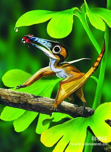 通過分支系統(tǒng)學分析顯示,森林翼龍的系統(tǒng)關(guān)系更接近于鳥掌翼龍類,與鳥掌翼龍類組成姐妹群,但也缺少鳥掌翼龍類所具有的頭骨脊突等特征。鳥掌翼龍類包括了大部分進步的白堊紀翼龍類群,如體型巨大的、翼展超過6米的無齒翼龍,以及目前世界上最大的風神翼龍,翼展可達10米以上?茖W家認為,那些個體龐大的鳥掌翼龍類起源于體形嬌小的、沒有牙齒而且頭部無脊突的小型樹棲翼龍。這些小型翼龍嬌小的身體很容易隱蔽在裸子植物的樹叢中以躲避大型動物的獵殺,它們悄無聲息地飛行于樹木之間以昆蟲為食,并逐漸進化為白堊紀晚期天空中翱翔的巨無霸。(作者:洪蔚)