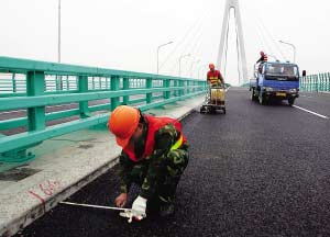 杭州灣大橋是一座“數(shù)字化”大橋,平均每公里就有1對監(jiān)視器,中央監(jiān)視系統(tǒng)時刻監(jiān)控大橋的維護(hù)管理,大橋的“身體健康”在實時掌握之中。(劉開明)