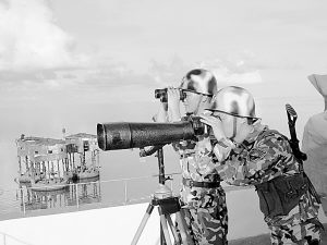 2006年6月,軍械處副處長海洋去南沙巡檢時,發(fā)現(xiàn)某型高射機槍在礁堡實彈射擊時,鋼制支架與水泥房頂劇烈碰撞,既影響射擊精度,還威脅操作手的安全。為此,軍械處成立科研攻關(guān)小組,上礁采集了上千組數(shù)據(jù)。不久,某型高射機槍腳架緩沖裝置問世,配發(fā)到島礁各個戰(zhàn)位。
