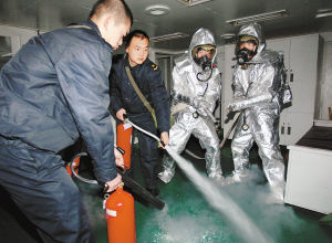 艙室滅火訓(xùn)練(王松岐/攝)