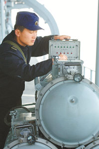 魚雷兵對(duì)魚雷進(jìn)行發(fā)射前檢查(王松岐/攝)