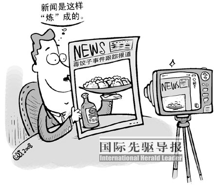 第二天,許多平面媒體也加入“炒作戰(zhàn)團(tuán)”,報道用語也由“餃子中毒事件”升級為“毒餃子”。日本右翼媒體《產(chǎn)經(jīng)新聞》不僅連篇累牘報道,還把駐京記者的博客放在了其網(wǎng)站的顯要位置。而發(fā)行量最大的保守報紙《讀賣新聞》則特別強調(diào)是“中國產(chǎn)餃子”,明顯是把責(zé)任推給中國。而這天的共同社則繼續(xù)發(fā)揮它作為通訊社的優(yōu)勢,接連播發(fā)12條相關(guān)新聞,包括一條“‘毒餃子’事件令人擔(dān)憂北京奧運食品安全問題 ”的評論。