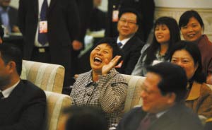 在去用晚餐的電梯里,湛江市徐聞縣龍?zhí)伶?zhèn)東角村村委會主任陳雪榮成了廣東團里的明星代表。這個矮矮瘦瘦,皮膚黝黑的女代表用雙手捂著漲紅的臉笑,“真沒想到汪洋書記能現(xiàn)場幫我們漲了工資!”