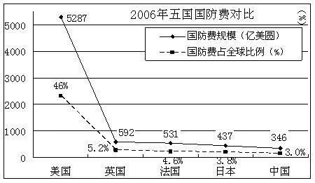 圖一 2006年部分國(guó)家國(guó)防費(fèi)開(kāi)支占全球開(kāi)支比重。