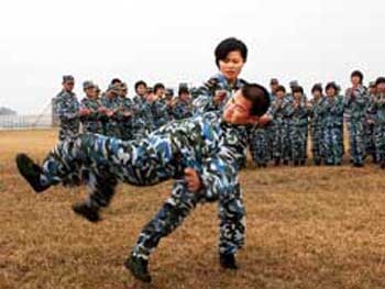兩棲女子偵察隊受命擔負400米障礙、散打、格斗、沖鋒槍速射等6個課目的演示任務(wù)。