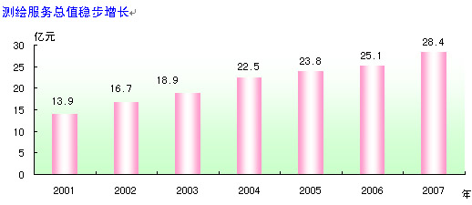 測繪保障服務取得新成效。完成測繪服務總值再創(chuàng)新高,達28.4億元。為全社會提供各類地形圖60.2萬張,大地成果16.4萬點,航攝成果28.5萬片,數(shù)字地圖48.3萬幅。編制出版地圖、圖書2363種,總印數(shù)1.5億幅/冊。為全國第二次土地調(diào)查、新農(nóng)村建設、主體功能區(qū)規(guī)劃、環(huán)境監(jiān)測、公共安全管理、防災減災、國防建設等重大工程提供測繪保障,為邊界勘界、長城保護、極地科考、2008奧運會等提供測繪服務。經(jīng)國務院批準并授權(quán),國家測繪局和建設部聯(lián)合公布我國第一批19座著名風景名勝山峰高程數(shù)據(jù)。