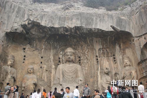 中新網(wǎng)4月19日電 “網(wǎng)上看河南”采風(fēng)團18日上午探訪龍門石窟。龍門石窟位于河南省洛陽市南,為中國古代佛教石窟藝術(shù)的三大寶庫之一。