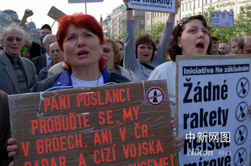 圖:布拉格再次爆發(fā)游行反對美國設(shè)反導(dǎo)雷達(dá)基地