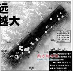 此次汶川地震極具破壞性,目前已造成2萬多人死亡,遇難人數(shù)估計在5萬人以上。令人不解的是,截至昨日,距離震中約92公里的成都死亡4100多人,1.4萬人受傷,而距震中140多公里的綿陽、北川死亡9600多人,受傷達5.9萬多人,距震中約101公里的德陽1萬多人遇難、6萬多人受傷。為何距離震中越遠,遭受的損失越大,這到底是什么原因造成的呢?