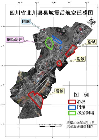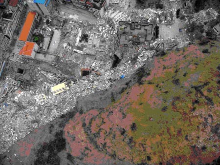 四川汶川8.0級(jí)強(qiáng)烈地震發(fā)生后,民政部國(guó)家減災(zāi)中心組建技術(shù)工作組趕赴四川地震災(zāi)區(qū)開展災(zāi)情評(píng)估工作。5月15日上午,工作組利用小型無人駕駛飛機(jī)在重災(zāi)縣北川進(jìn)行了航拍,共獲取北川縣城南部地區(qū)高清晰航拍照片與視頻影像。并與首都師范大學(xué)合作對(duì)數(shù)據(jù)進(jìn)行判讀。
