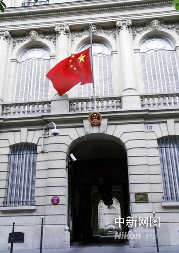 中新網巴黎5月19日電(記者 吳衛(wèi)中)今天的巴黎云低風靜,上午八時二十八分,中國駐法國大使館舉行儀式,深切哀悼“五•一二”汶川地震的遇難同胞。